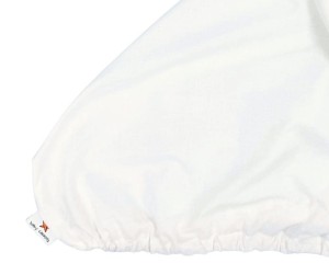 Prześcieradło bawełniane z gumką w kolorze białym (white), na materac o wymiarach 120x60 o wysokości do ok. 10 cm.