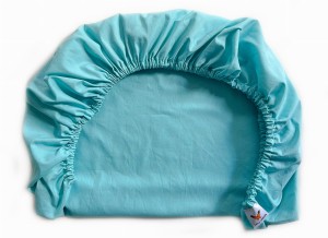 Prześcieradło bawełniane z gumką, kolor miętowy/morski , na materac o wymiarach 80x40 cm i wysokości do ok. 4 cm.