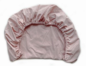 Prześcieradło bawełniane z gumką w kolorze sepii - zgaszonego, jasnego różu, na materac o wymiarach 80x40 cm i wysokości do ok. 4 cm.