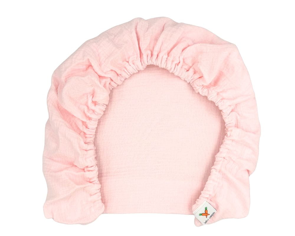 Prześcieradło muślinowe z gumką w kolorze różowym, na materac o wymiarach 80x40, dedykowane do gondoli i kołysek.
