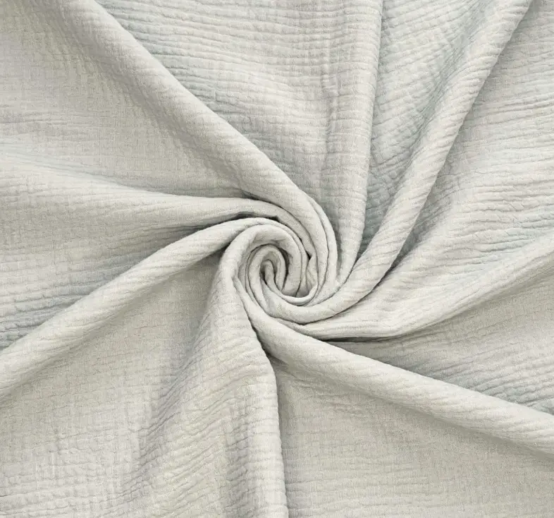 - dzięki luźnemu splotowi włókien bawełny, muślin wyróżnia się nietypową, pomarszczoną fakturą oraz wyjątkową lekkością