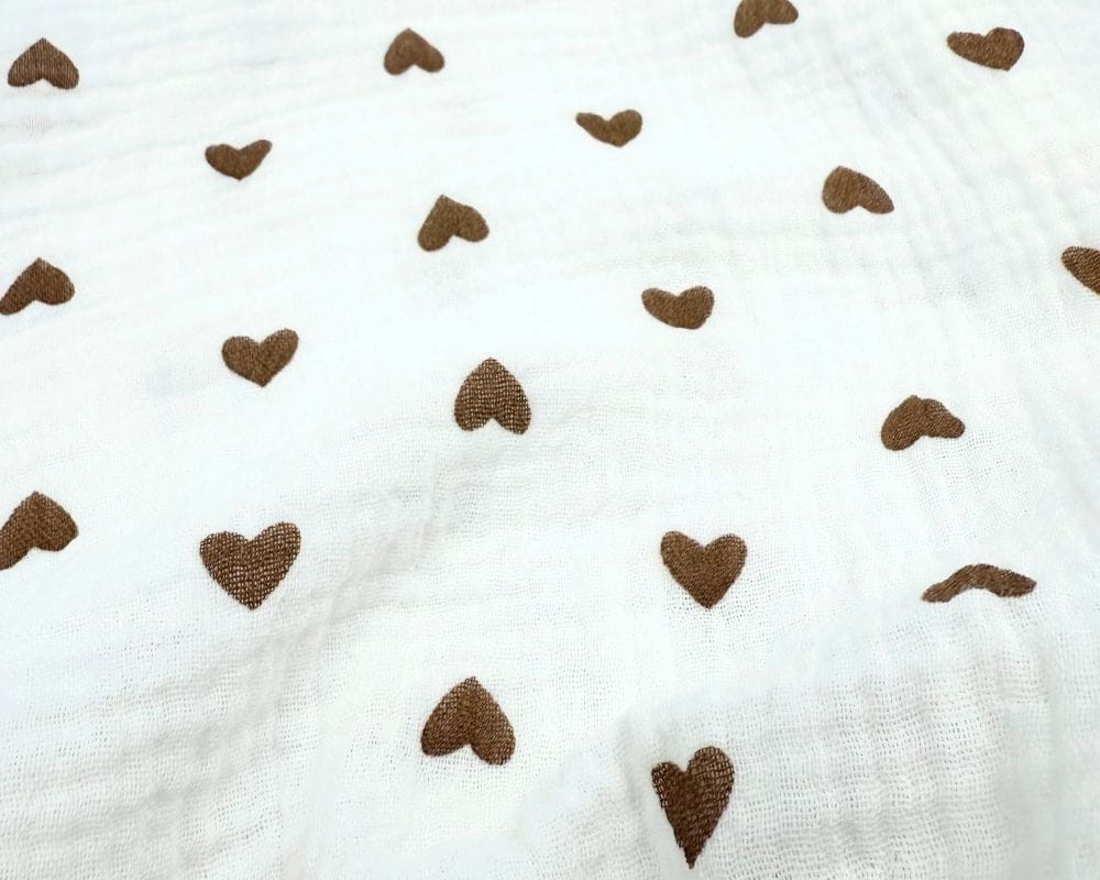 Prześcieradło muślinowe 80x40 białe w brązowe serduszka