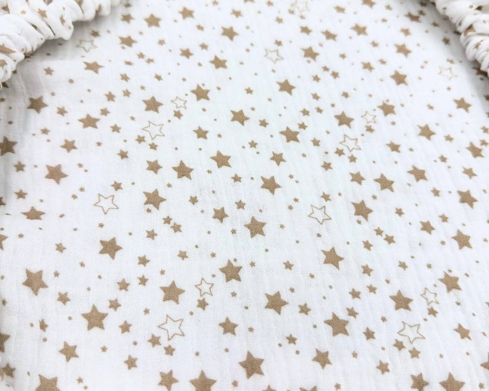 Prześcieradło muślinowe 90x50 do dostawki beżowe gwiazdki