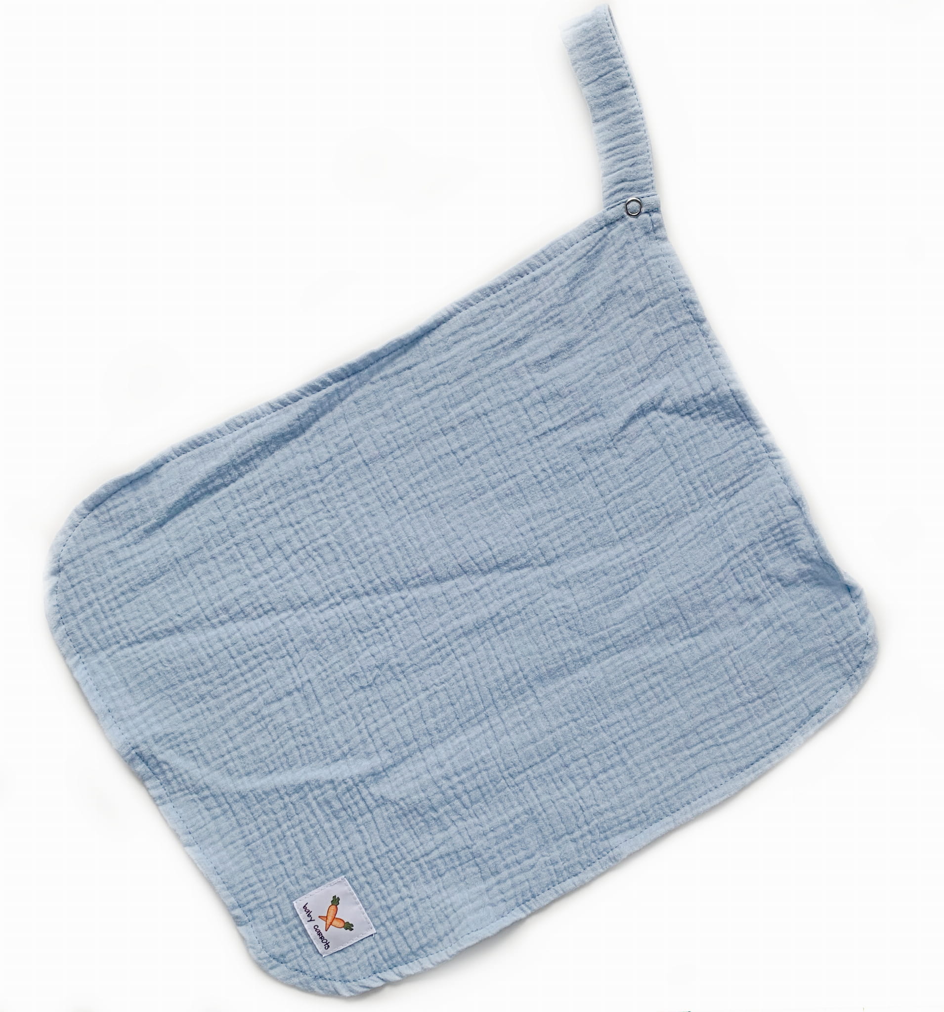 - Obecność bezpiecznego zatrzasku umożliwia przymocowanie do muślinowej zawieszki smoczka, gryzaka czy zabawki.