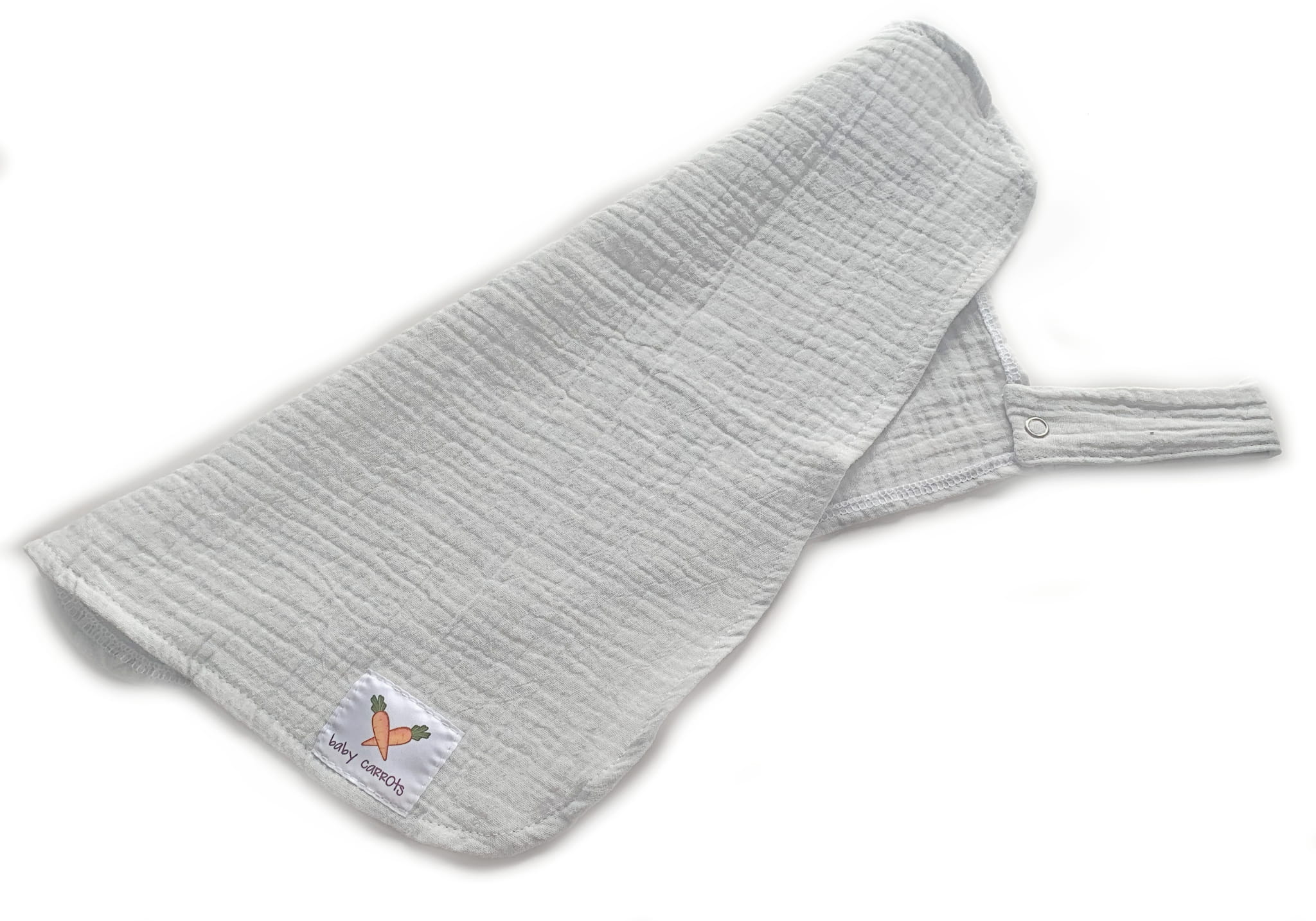 - Obecność bezpiecznego zatrzasku umożliwia przymocowanie do muślinowej zawieszki smoczka, gryzaka czy zabawki.